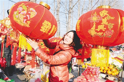 2月2日,在山东省青岛市泊里大集,一位市民在挑选大红灯笼。 春节临近,有着数百年历史的山东青岛泊里大集一派红红火火,年味浓郁,人们忙着采买年货,迎接新春佳节。 新华社发 |