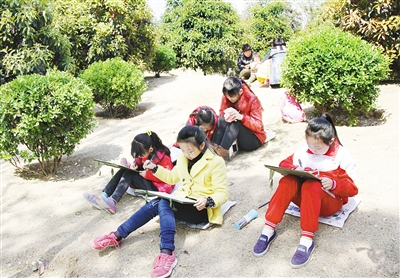 3月27日,一群孩子在户外写生。春暖大地,杨柳吐绿,鲜花绽放……许多美术爱好者走进大自然,用画笔描绘春天美景。