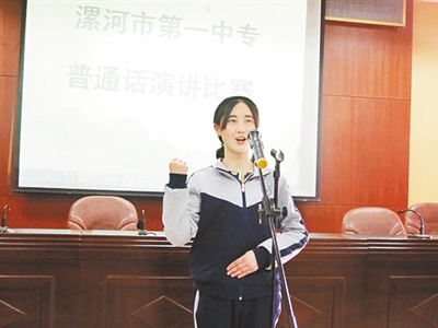 3月31日,漯河市第一中专普通话演讲决赛在该校学生活动中心举行。参加决赛的19名选手或赞美青春,抒发积极向上的进取精神,或声情并茂,歌颂身边的亲情、友情,或赞美祖国,营造了和谐、积极向上的校园文化氛围。