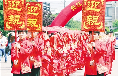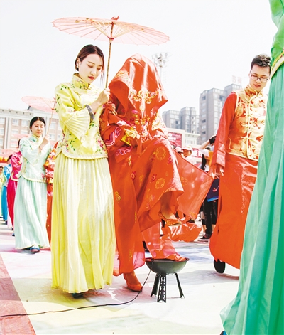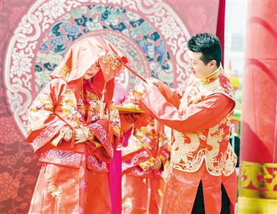 挑起你的盖头来,如花美眷展娇颜。本报记者 杨光 摄