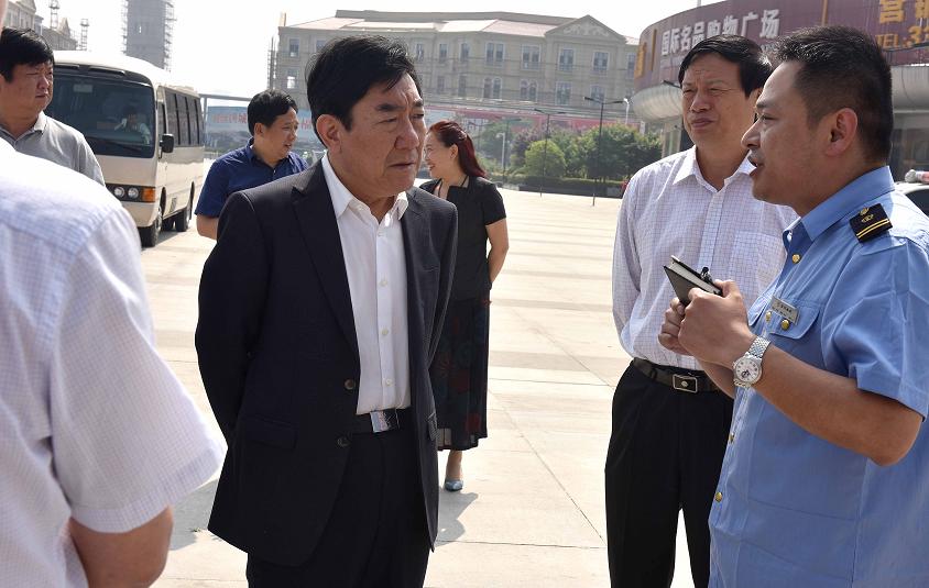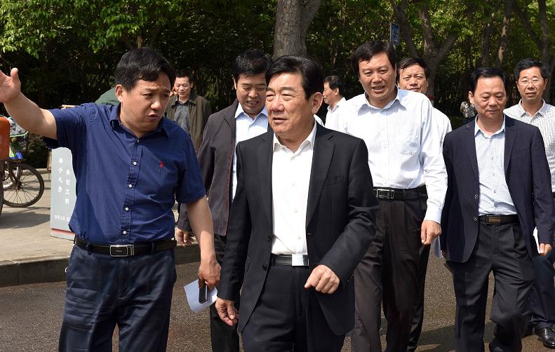 5月10日上午,市长曹存正,市委常委、宣传部长高喜东,副市长刘国勤等实地察看“两城同创”及市容环境整治工作。本报记者 王晓东 摄