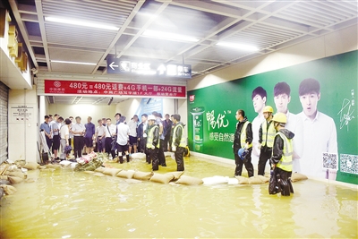 7月6日,武汉市中南路地铁站因雨水倒灌暂时停止营运。 连续多日强降雨后,7月5日晚到6日晨,武汉再遭强降雨袭击。受江河湖库水位暴涨影响,当前武汉城区渍涝严重,全城百余处被淹,交通瘫痪,部分地区电力、通讯中断,目前武汉已启动排渍红色预警,企事业单位调整上班时间,减少出行。新华社发