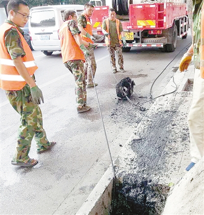 7月21日,工作人员正在疏通排水管道。为做好城市防汛工作,市政工程管理处组织人员对城市排水管网、沟渠、窨井进行清淤疏浚,保障城区安全度汛。