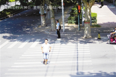 7月28日泰山路与黄河路交叉口行人闯红灯
