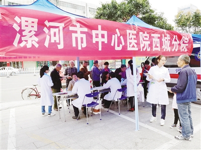 10月10日是“世界精神卫生日”,也是我市首家大型公立精神疾病治疗、康复机构——市中心医院西城分院(漯河市精神病专科医院)开诊两个月的日子。为进一步提高心理卫生服务能力,回馈广大患者,当天上午,在副院长王增民的带领下,该院精神科、康复科的刘军、黄文广、张艳丽、郑艳红等医生专家一行在我市交通路北段举办“世界精神卫生日”大型义诊活动。