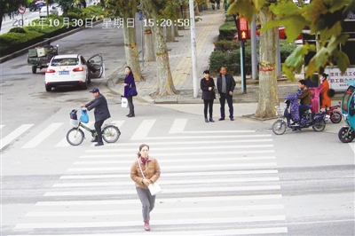 10月25日交通路与人民路交叉口行人闯红灯。