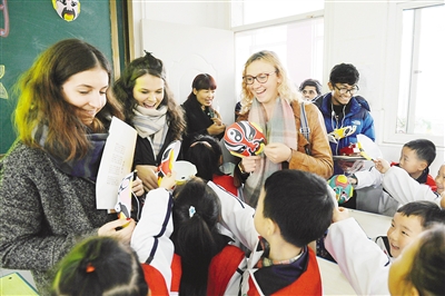 11月7日下午,留学生为昆仑路小学的同学们带来礼物。