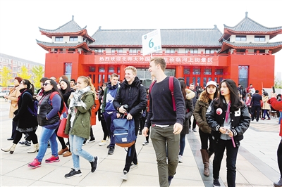 11月8日上午,留学生畅游河上街。