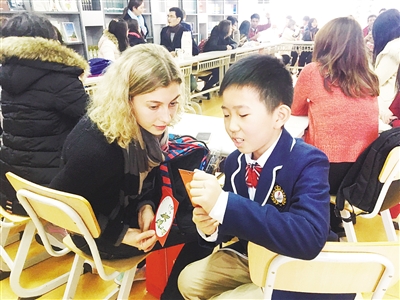 在随后的面对面交流中,留学生们热情地和孩子们聊天交流,互赠礼物。二年级的张文博与一位乌克兰美女聊得十分投机,一会儿猜字谜,一会儿出脑筋急转弯。最后,这位乌克兰的大姐姐直呼:“实在是太难了啊。”