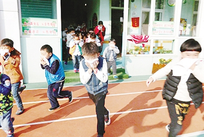 孩子们在老师的组织下有序撤离教室。见习记者 李文姣 摄