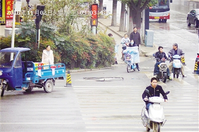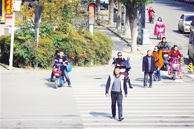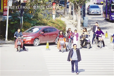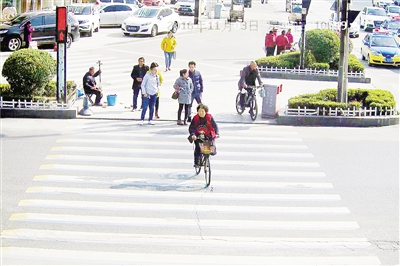 11月3日黄河路与泰山路交叉口行人闯红灯。