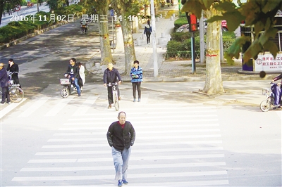 11月2日黄河路与泰山路交叉口行人闯红灯。