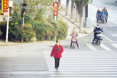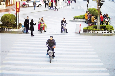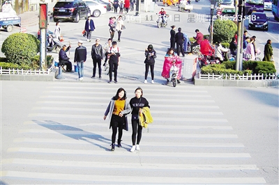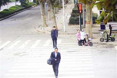11月6日黄河路与泰山路交叉口行人闯红灯。