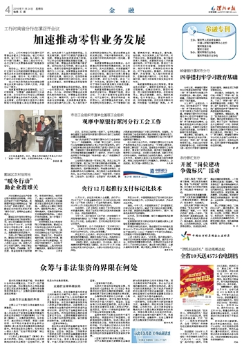 工会规范化建设是一项系统工程,涉及工会工作的方方面面,是工会工作不断发展的基石和保障。中原银行漯河分行工会紧紧围绕全市工作大局,以基础建设法制化、组织建设制度化、阵地建设标准化、业务建设群众化为创建标准,强力推进工会组织建设规范化,在工作运行机制上形成了“党委领导、行政支持、工会运作、各方配合、全员参与”的大格局,最大限度地发挥和调动广大职工的积极性、创造性,为持续加强工会组织规范化建设持续注入激情与活力,促进企业持续稳健发展,为助推我市工会工作不断开创新局面不懈努力。