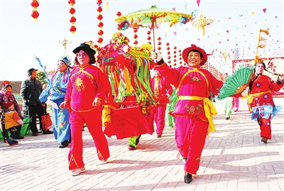 1月21日,一家艺术团在黄河路为市民演出。新春佳节临近,我市街头张灯结彩、装饰一新,处处洋溢着喜庆的节日气氛。