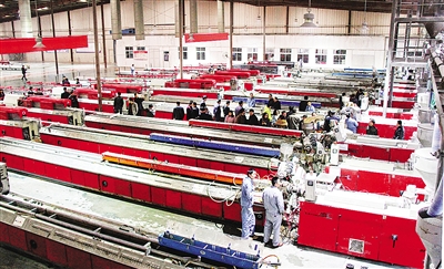 3月22日,实德集团漯河建材公司的PVC异型材生产线工人正在工作。该项目位于郾城区太行山路实德工业园,由大连实德集团独资建设,2009年全面建成投产以来,已成为中部地区最大的PVC异型材生产基地。本报记者 范子恒 摄