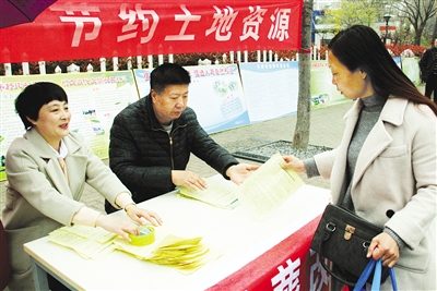 3月30日,源汇区民政局工作人员在双汇广场向市民宣传殡葬改革新政。连日来,该局积极倡导市民采取“鲜花换纸钱”、“植树祭亲人”等方式进行清明节祭扫。