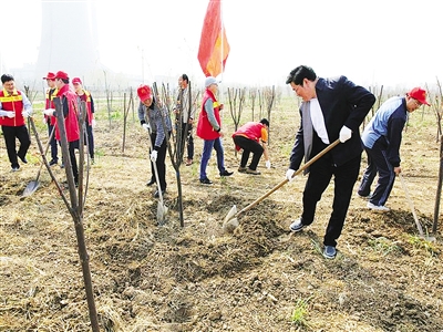 4月6日下午,市司法局党员志愿者服务团在该局党组书记王新田带领下到市义务植树基地,开展植树活动。张继耀 摄