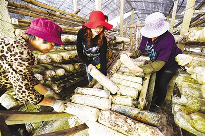 5月8日,在舞阳县文峰乡李斌庄村,村民把刚制好的香菇棒放到架子上。近几年,李斌庄村大力发展香菇种植业,并引进龙头企业提升种植水平,目前已辐射带动周边18个自然村从事香菇种植,带动2000个贫困户脱贫致富,产品出口韩国、日本,把小香菇一步步做成了大产业。