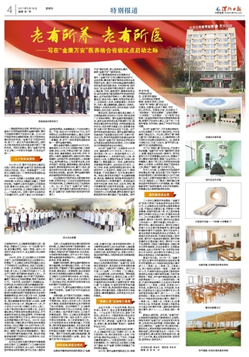 如果说辛勤劳动和优质的服务让“金康万安”稳步向前,那么医养结合模式就是“金康万安”飞跃的法宝。