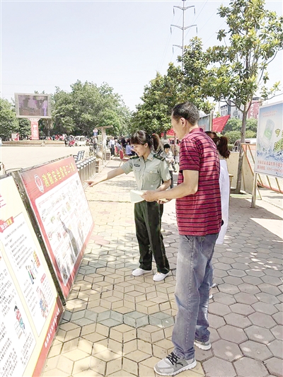 5月16日,市消防支队组成消防知识宣讲团深入第十五届食博会,向会场的食客和商贩们讲解宣传消防知识。徐 沛 摄