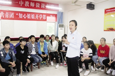 9月5日下午,团市委组织共青团知心姐姐团队十余名志愿者走进召陵镇一中,开展“知心姐姐开学第一讲”法制进校园活动。本报记者 范子恒 摄