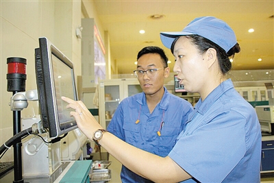河南中烟工业有限责任公司漯河卷烟厂对接国家青年人才托举工程,大力培养青年质检拔尖技术人才。图为9月22日卷包部青工在学习卷烟产品质检要点。孟令辉 摄