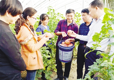 11月8日,郾城区裴城镇中和寨村新型大跨度钢架蔬菜大棚里种植的新品种番茄开始采摘上市。该村从去年建棚到种植,市菜办技术人员对没有蔬菜种植经验的村民全程及时进行技术等方面的指导,让他们在致富路上走得更踏实。 本报记者