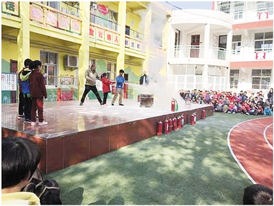 近日,源汇区泰山中路小学开展安全演练活动,拉开学校消防安全宣传教育月序幕。李彩霞 李金萍 摄