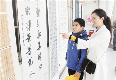 11月8日,由市政协教科文卫体委员会、市教育局、市文化广电新闻出版局、市文联共同主办的第四届“许慎杯”漯河师生书法作品展暨第二届篆刻展在许慎文化园展出,共展出171幅书法、篆刻作品。 本报记者 李慧宇 摄
