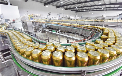 河南元阳食品有限公司于2016年4月在临颍县注册成立,主要从事食品、饮料生产加工和食品包装。该公司投资1600多万元,建成一条年产2亿罐饮料的生产线,目前主要生产加多宝植物饮料。为进一步开拓河南及周边地区金属包装市场,公司计划于2017年底追加投资1000万元,建设一条年产1.5亿个三片罐的生产线。图为11月15日记者拍摄的公司饮料生产线。
