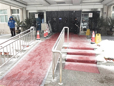 二是营造良好就医环境。全市各大医疗机构积极组织清扫院内外、道路、楼前等公共区域积雪,铺设防滑毯、抛洒除雪剂,设置提醒标牌,提前做好门诊、病区供暖设备的维护检修,多措并举为患者营造良好的就医环境。