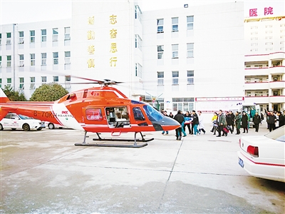 由于飞机起飞需要一系列的空中管制手续,直到下午4点左右,郑大一附院的直升机才降落到漯河五中的操场上。早已等候在此的医护人员迅速将病危女童抬上直升机,一路向北,飞往郑州方向。