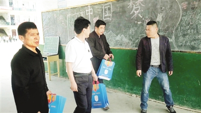 5月2日,临颍县司法局宣传小分队走进皇帝庙一中开展送法进校园活动,向学校赠送了为其量身定制的普法宣传“套装”。田志光 摄