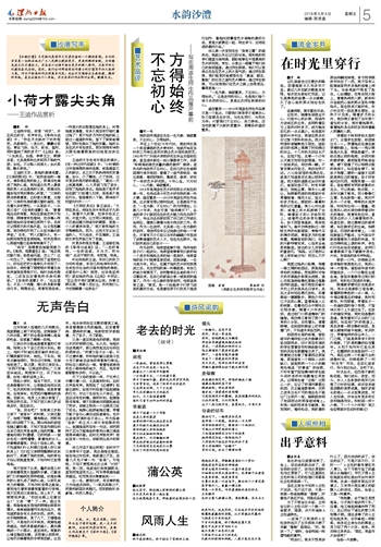 王迪,女,笔名流默,1991年出生于漯河临颍,是一名乡村教师,业余时间爱好写作,其散文作品散见于《漯河日报》、《漯河晚报》等。