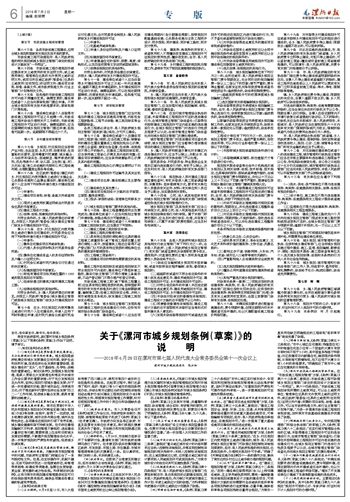 (一)制定《条例》是贯彻落实新发展理念,充分发挥规划引领作用的需要。城乡规划是政府统筹安排城乡发展建设空间布局,保护生态和自然环境,促进经济社会发展的重要依据,是城乡建设的“龙头”,处于基础性、先导性、战略性的重要地位。制定《条例》,加强城乡规划管理,是深入贯彻五大发展理念和落实中央城市工作会议要求的重要举措;对于充分发挥规划龙头作用,坚持以规划引领城乡建设发展;对于进一步完善城市功能、提升城市品位、传承城市文化;对于落实新时代漯河经济社会发展“四三二一”工作布局,促进城乡融合发展,都具有重要的战略意义。
