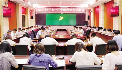 ② 图② 为庆祝建党97周年,市城乡一体化示范区组织开展新党员入党宣誓、老党员重温入党誓词、党的理论知识测试、观看红色电影等系列活动。图为6月27日,党员干部参加理论知识测试。本报记者 胡鸿丽 摄 |