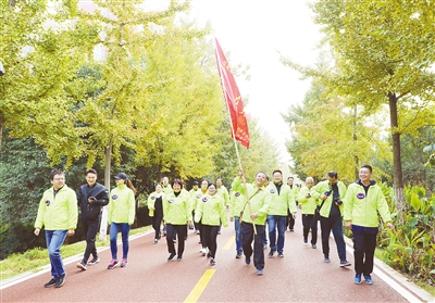 为庆祝第十九个中国记者节,11月8日,由中共漯河市委宣传部、漯河市新闻工作者协会主办的“我们走在大路上”健步走活动在红枫广场举行,100多名新闻工作者参加。
