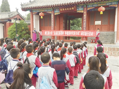11月6日,源汇区柳江路小学组织学生到杨再兴纪念园,举行以“弘扬民族精神,争做新时代好少年”为主题的研学活动。