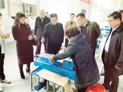 为借鉴脱贫攻坚工作的成功经验,近日,临颍县陈庄乡组织乡领导班子成员、村党支部书记、致富带头人等先后参观了确山县天源中药材公司、顺春农业和常庄村乡村振兴旅游项目。图为考察团成员在天源中药材公司参观艾制品制作流程。