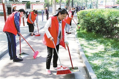 志愿者清洁社区环境。本报记者 范子恒 摄