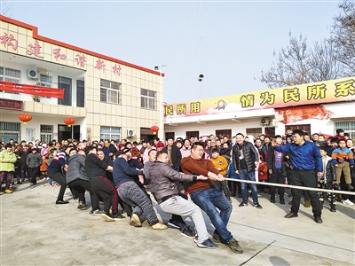 2月11日上午,黑龙潭镇老应村举办干群拔河比赛。100名村民被分成10个小组进行比赛,决出了前三名。