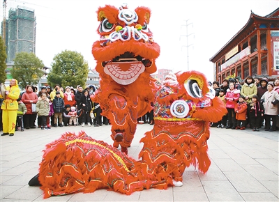 图① 2月17日,开源河上街景区广场锣鼓喧天,我市民间艺术队为游客献上精彩的演出。