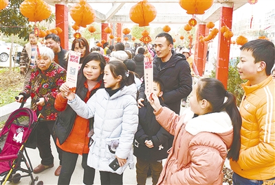 图② 2月17日,郾城区和平路社区在辽河花园小区广场举行“闹元宵 猜灯谜”活动,社区居民争相参与。本报记者 胡鸿丽 摄