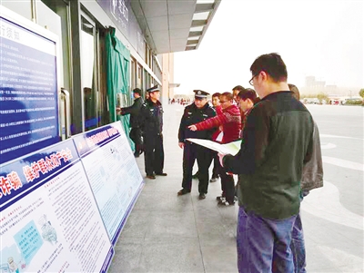 连日来,市公安局阴阳赵分局机动中队在高铁西站向过往旅客宣传防范电信诈骗有关知识。卢 超 摄