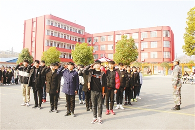 2月28日上午,漯河二中专举办了2019春季新生军训闭幕式。图为该校新生英姿飒爽地站在操场上接受检阅。本报记者 李林润 摄