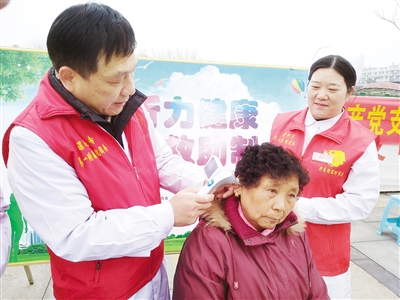 3月3日是第二十个全国“爱耳日”。当天,市残联联合市人社局、市卫健委、团市委等在双汇广场举办“爱耳日”宣传教育活动。图为市中心医院耳鼻喉科志愿者在给市民检查耳道。本报记者 王艳彬 摄