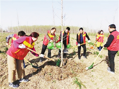 3月12日,郾城区委政法委党员志愿者到龙城镇冢马村的义务植树基地开展“植绿、护绿、爱绿”主题活动。于会娜 摄