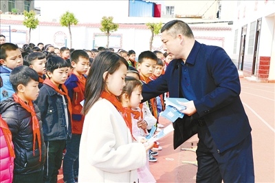 近日,郾城区举行“校园食品安全暨传染病控制”知识讲座。图为该区疾病预防控制中心工作人员给学生发放宣传教育资料。潘范学 摄