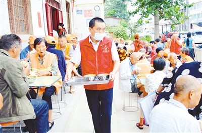 周日早晨,他带着不满11岁的儿子,一早来到粥屋,穿上志愿者服,戴上口罩,清洗双手,和其他志愿者一起开始紧张忙碌的志愿服务工作。熬制米粥、清洗蔬菜、准备食材……早餐做好,大家分工明确,一边摆放桌椅,组织环卫工人和一些困难群众有序入座,一边帮他们盛饭、端菜、拿馍……就餐结束后,志愿者及时把桌椅整理好,清洗餐具、打扫卫生。